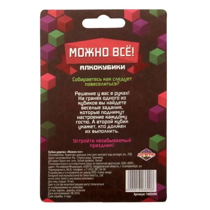 Купить кубик "можно все", алкокубики для принятия решений от 60 руб. с доставкой до пункта выдачи в Протвино. Интернет магазин ДекаМаркет. Оплата при получении.