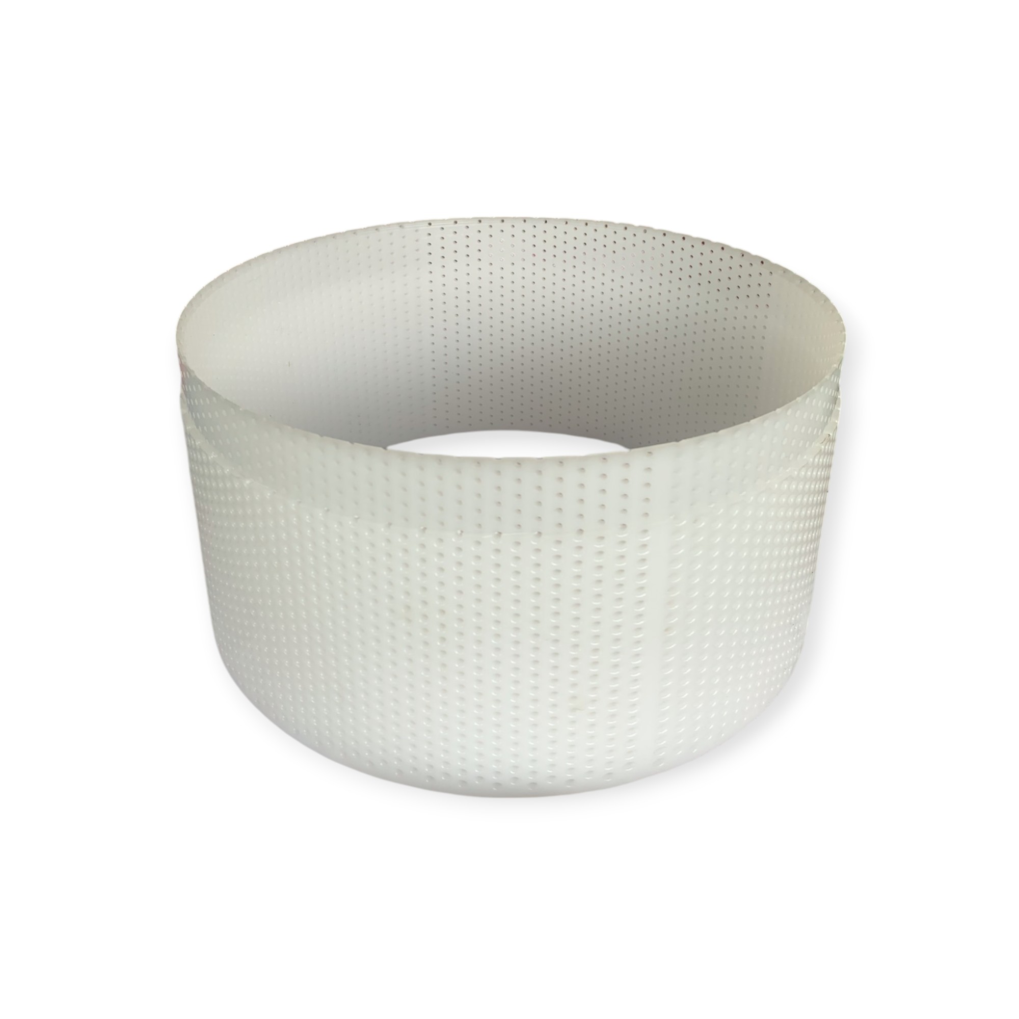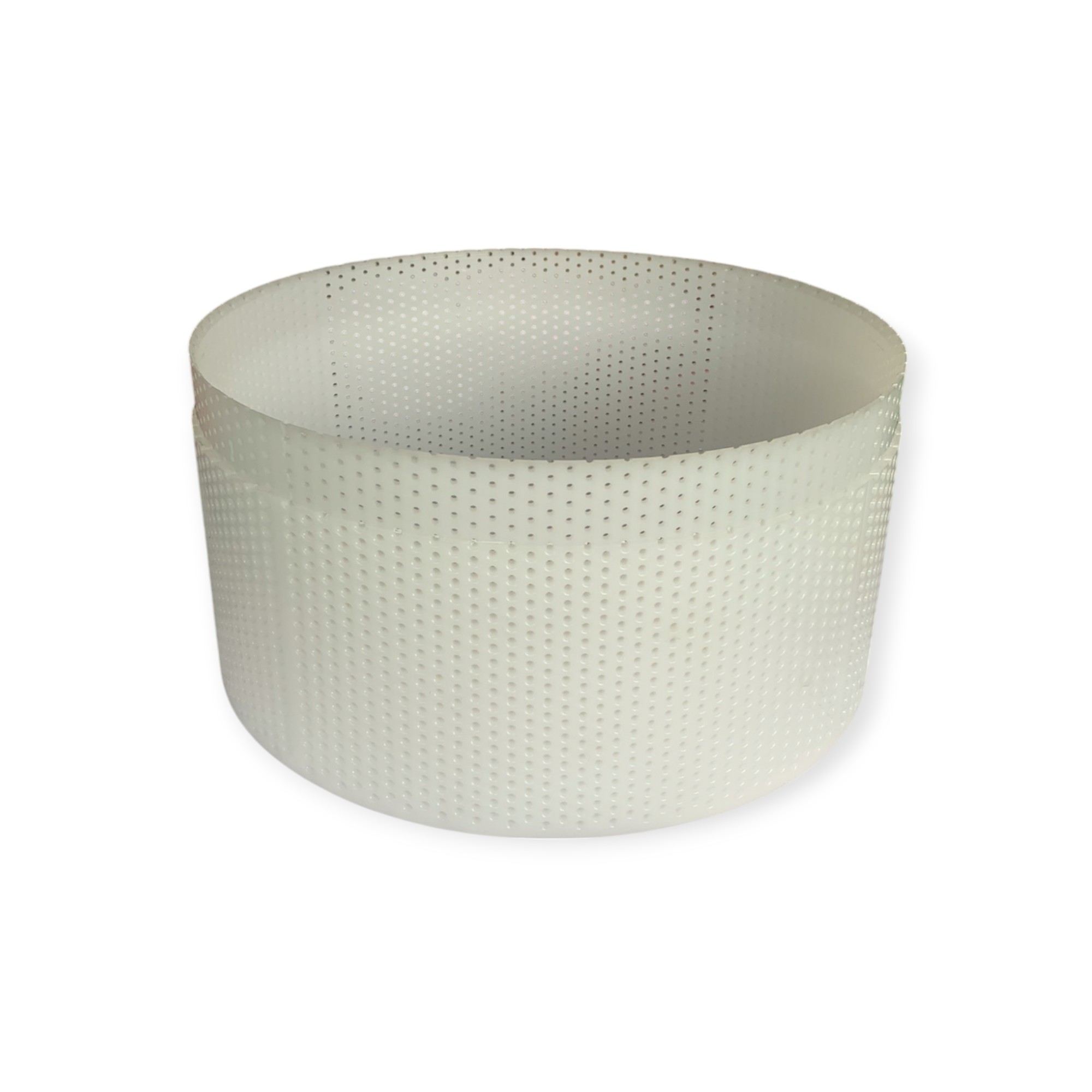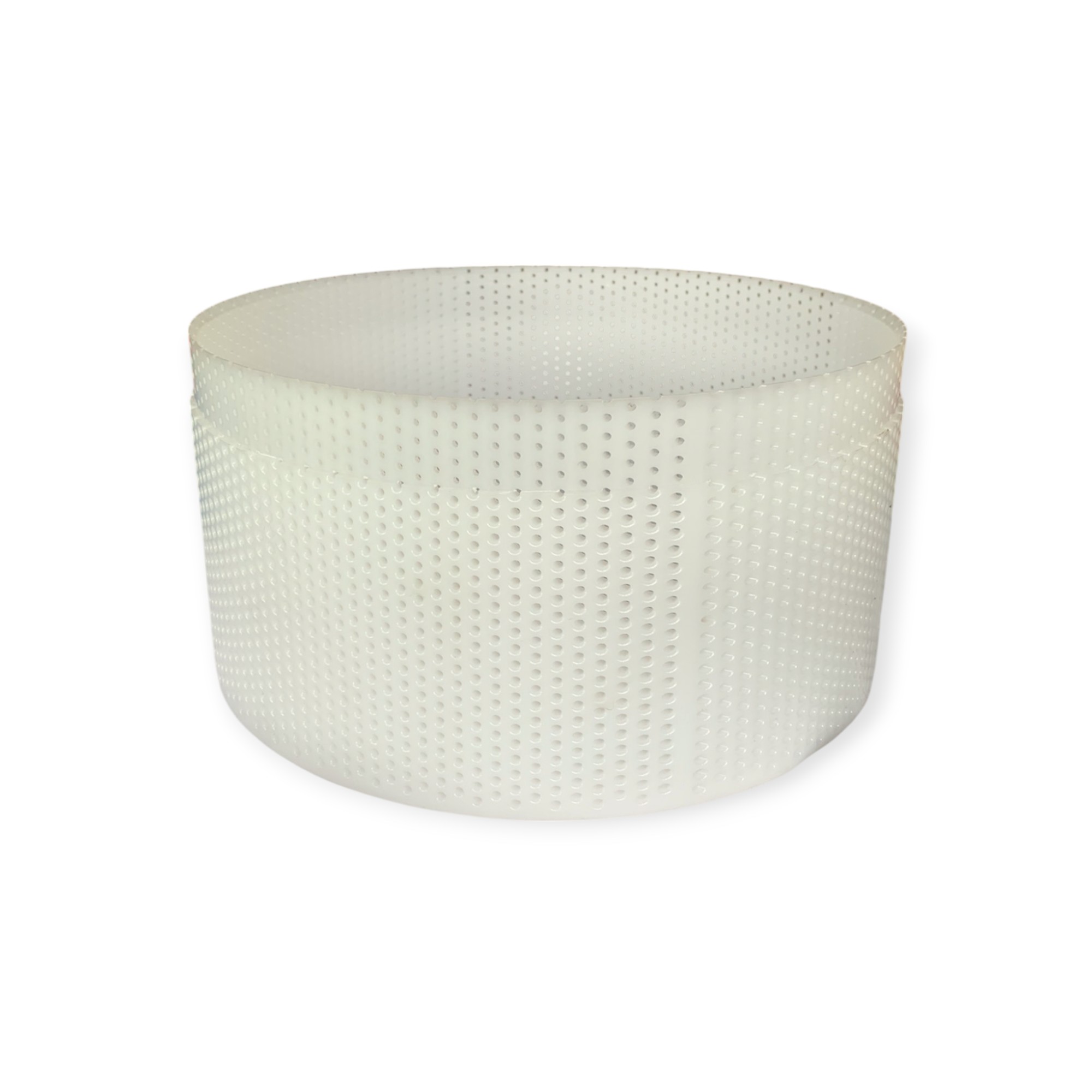 Удлиняющая форма для сыра P00776SOP Anelli Lodi на 5000 грамм. Дополнительная удлиняющая форма накладывается на основную форму для увеличения количества единовременной загрузки сырного зерна. Моется и дезинфицируется средствами, разрешенными для молочной промышленности. Схема мойки следующая: 1. Предварительная мойка при температуре 30-40°C-для удаления остатков продукта. 2. Дезинфекция в щелочной среде (при температурах и концентрациях, рекомендованных производителем чистящих средств). 3. Промывка в чистой воде. Материал: пищевой полипропилен. Размеры формы: верхний диаметр – 305 мм, нижний диаметр – 310 мм, высота – 155 мм.